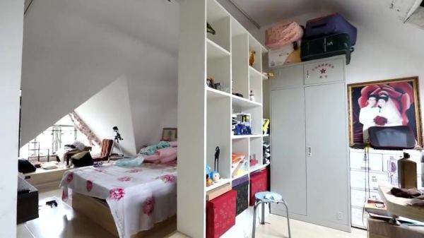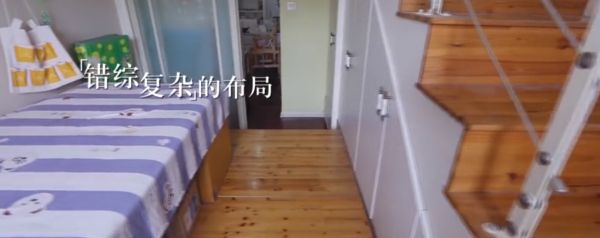 原本的二人空间要容纳四个人,错综复杂的空间变得局促。无奈,小女儿只能和父母挤在主卧,大一点的儿子就睡在楼梯旁的走道。