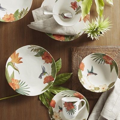 意大利画家笔下的手绘风景,展示为盘子上的扶桑花和蜂鸟,催化热烈氛围。或者配一套佛罗伦萨文艺风情的质感玻璃水杯,在复古味道中,让聚会变成美丽的存在。