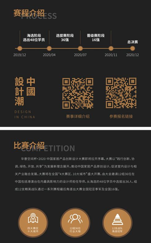由中国室内装饰协会主办,深圳市华意整体家居有限公司联合主办的“华意空杯-2020中国家居产品创新设计大赛”启动仪式将于2019年11月30至12月1日在佛山举行。届时将同期举办“中国国际室内设计高峰论坛”、“全国室内装饰行业工作座谈会”、“2019中国室内设计颁奖盛典”。中国室内装饰协会名誉会长、行业发展战略委员会主任刘珝,中国室内装饰协会会长张丽,中国室内装饰协会执行秘书长王东明,深圳市家具行业协会副会长、华意空间董事长娄文华及中国室内装饰协会秘书处负责人,分支机构负责人,各省市协会负责人,来自全国各省市的会员代表,列席代表和媒体机构等三百余人将参加此次启动仪式。