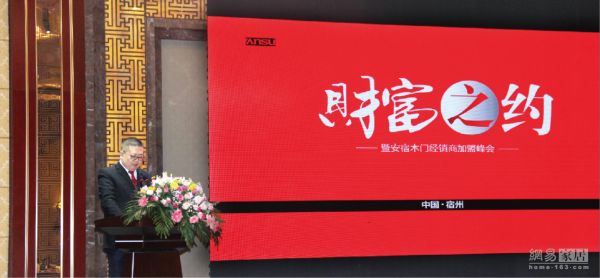 会议伊始安宿木门事业部总经理温晓斌先生登台致辞,他首先对各位加盟商的到来表示欢迎,并对行业趋势、消费形式的转变做了剖析,承诺公司将一如既往积极地为安宿木门经销商提供高标准产品和在现有产品的基础上拓宽配套产品体系,从而使经销商由单一的卖产品向做单值的经营方向转型升级,激情热忱的致词迎来了加盟商热烈的掌声。