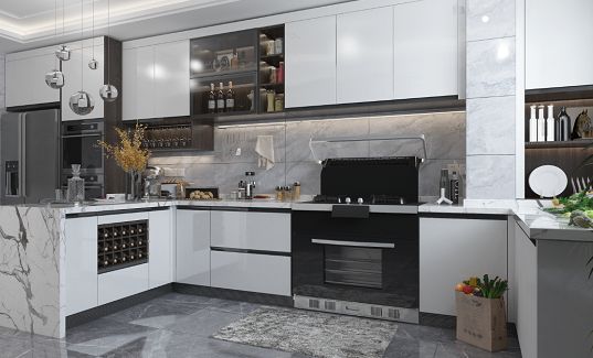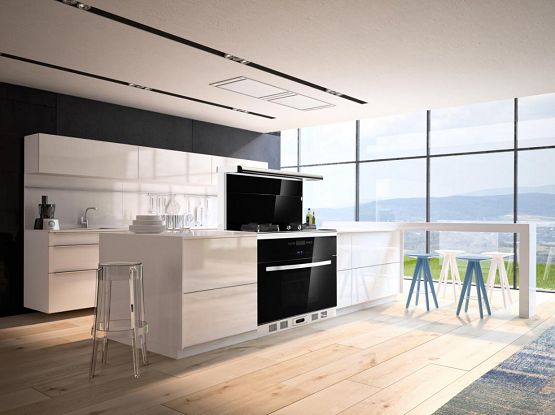 外形设计上采用黑晶防爆钢化玻璃材质,耐高温、抗腐蚀、不变色、不易变形的厨壹堂集成灶B7Z与现代风格一直是相辅相成的“好伙伴”。厨壹堂集成灶B7Z集吸油烟机、燃气灶、蒸箱、烤箱、消毒柜,以及一米台面和下柜7件厨房必需品为一体。其以齐聚煎、煮、炸、炒多种烹饪方式,满足现代年轻群体快速烹饪的需求。与此同时,B7Z能够以色彩的高度凝练和造型的极度简洁,在满足功能需要的前提下,将现代风格里的整个空间、人及物进行合理精致的组合,用最洗练的笔触,描绘出最丰富动人的空间效果。