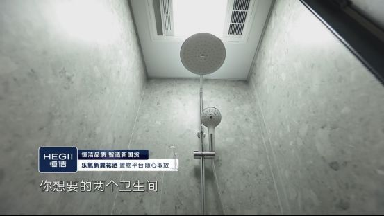 为了让工作忙碌的夫妻,回家后享受放松惬意的淋浴时光,设计师选择的是乐氧大花洒。这款花洒混合氧气和水,给家人带来轻柔舒适的淋浴体验。同时,它能精准控温,可以更好地锁定温度,不用反复调试。同时,恒洁的淋浴房将卫浴空间干湿分离,让整个空间更加整洁有序。