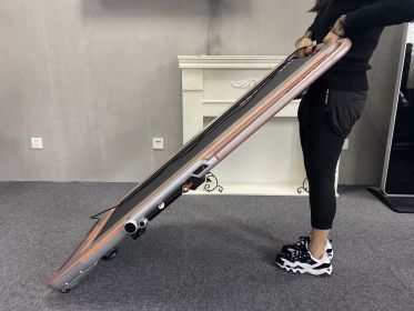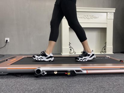 全铝合金一体机设计,区别于市面上大多数走步机都是塑料材质。HomeWalking轻巧超薄一体化的设计,也打消了大家对跑步机笨重占地方的顾虑。在你不使用的时候,可以将它收纳至床底,沙发下,体积仅占0.075m²。共有粉金、银灰和磨砂黑3款配色。我们今天开箱的是适合猪猪女孩的粉金,可以看到外观精致柔美。