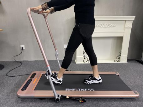 HomeWalking有2种配置,有扶手款和无扶手款,可以按需选配,我比较建议选择有扶手款,把扶手放置到底部就可以折叠成平板走步机模式。有扶手款更接近于轻跑步机,配速为12KM/h,平板走步机模式的配速8KM/h,符合走步机的安全标准。