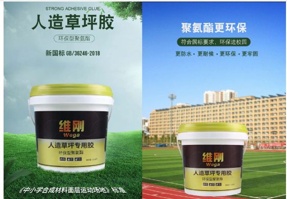 维刚双组份聚氨酯人造草坪专用胶水是一种双组份粘合剂。完全符合足球场的新国标GB/36246-2018《中小学合成材料面层运动场地》标准的草坪胶水,主要用于足球人造草坪的铺装,尤其适用于粘结人造草坪之间的接缝带。