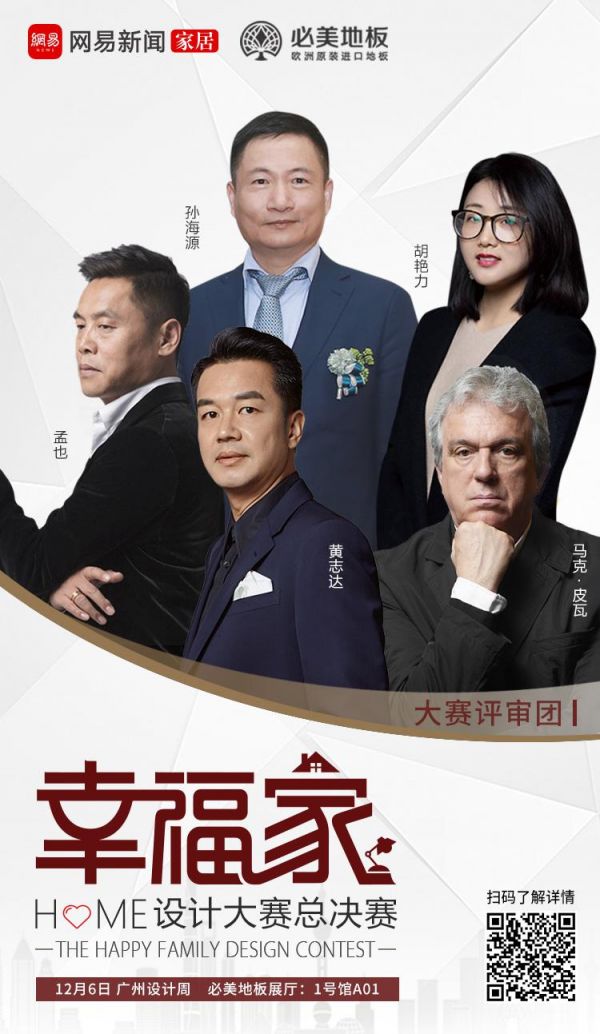 其次,由必美地板主办的中意设计大咖汇暨2019必美地板&网易幸福家设计大赛总决赛将于12月6日在广州设计周保利馆1号馆进行巅峰对决!