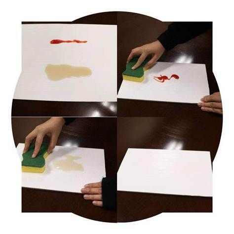 耐擦洗性能测试:先将番茄酱和饮料倒在涂有德爱威尚潮墙面漆的样板上,然后尝试用抹布轻轻擦拭,发现擦完后的样板依然洁净如初,而且反复擦拭过后的样板上,涂料依旧保持着原有的顺滑细腻,没有发生明显变化,耐得住擦洗。