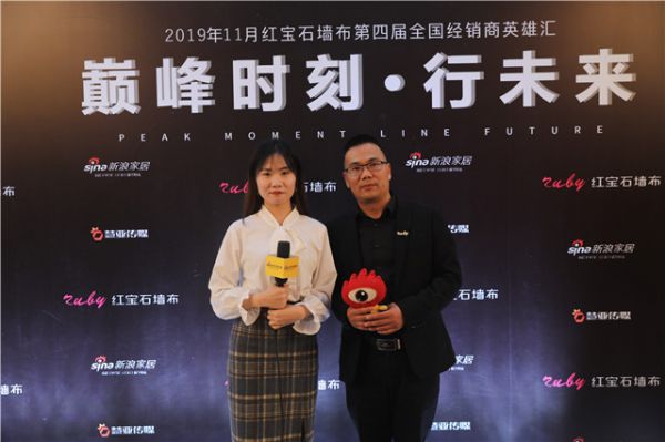 【新浪记者】:各位观众大家好,我是新浪家居墙布频道的记者黄玉,今天我所在的地方是2019红宝石墙布第四届全国经销商英雄汇暨11月昆明经销商大会的现场,今天非常荣幸能够邀请到红宝石的总经理凌厉接受我们的采访,凌总你好。本次大会的主题是“巅峰时刻 行未来”,个人如何解读本次大会的主题?