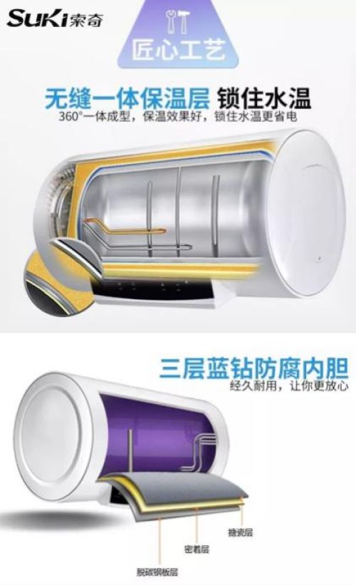 也许大家在使用电热水器时都会遇到同样一个问题,没用完的热水在储罐里慢慢变冷,如此一来就会十分费电,而索奇电热水器D801采用无缝一体保温层,锁住水温更省电,再加上三层蓝钻防腐内胆,经久耐用,让您使用更放心。
