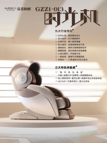 慕思时光机按摩椅经过 126 道的工序组装,25 道的品质检测,注重人性化的需求,九大行业创先:蓝光浴疗、香道养生、音乐SPA 、慕思助眠、颈肩放松、腰背舒展、美臀塑型、舒筋活络、气息调理等程序,满足不同人群的个性化需求。其以打造整体的助眠环境为出发点,注重与用户的每一次互动接触,实现“眼耳鼻舌身意”六根+360°按摩的深度睡眠体验。以中医的脏腑、经络学说为理论基础,从中医传统理论精髓、创意设计到先进技术的深入运用,成就科技、养生与创意三位一体的有机结合。
