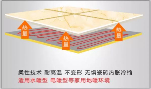 雨虹优彩靓缝剂采用雨虹靓缝专利技术,超柔耐高温,不变形,无惧瓷砖热胀冷缩,适用于水暖型、电暖型等家用地暖环境。