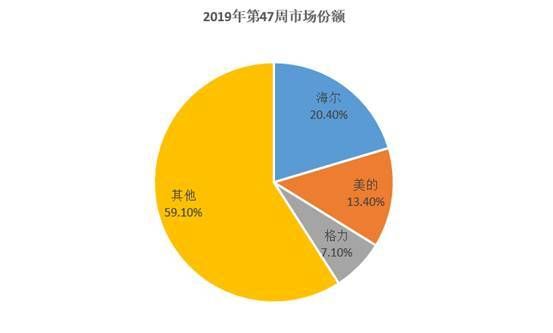 在第47周,各产业市场的格局都发生了不同变化,冰箱市场海尔33.6%仍居第一,容声则以2.7个百分点反超美的成第二;洗衣机和冷柜方面,除了榜首的海尔份额不断扩大,二、三名都出现了不同程度的缩水;空调市场,格力份额从51.8%陡降至36.4%,美的则较46周上升5.2%,以34.1%的份额排第二;热水器方面,海尔以21.1%份额位居第一;厨电老板方太集体下滑;彩电市场海信和创维则稳中有升。