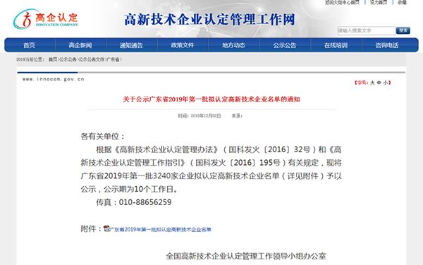 12月2日,全国高新技术企业认定管理工作领导小组办公室公示广东省2019年第一批次高新技术企业拟认定名单,公示期为10个工作日,合计拟认定省内3240家企业为高新技术企业。其中广东伊斐净化科技发展有限公司赫然在列。