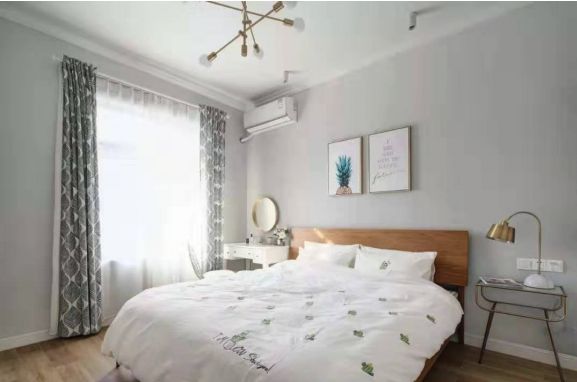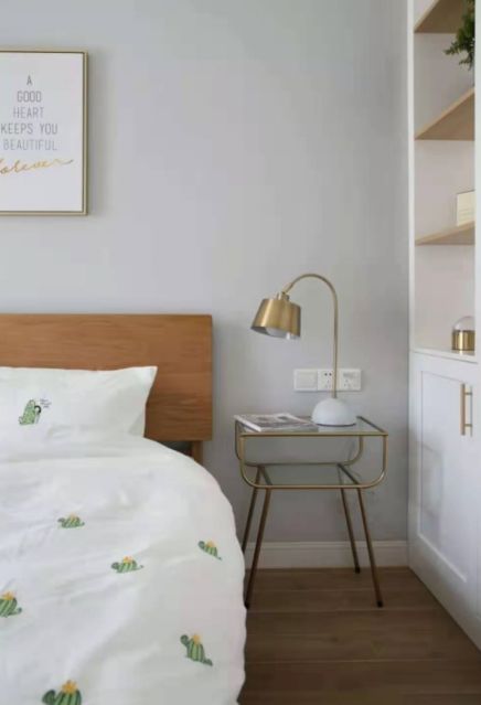 ▼卧室延续了客厅的色调,简约的装饰外加生机文艺的床品,给人营造出极度舒适的睡眠环境。