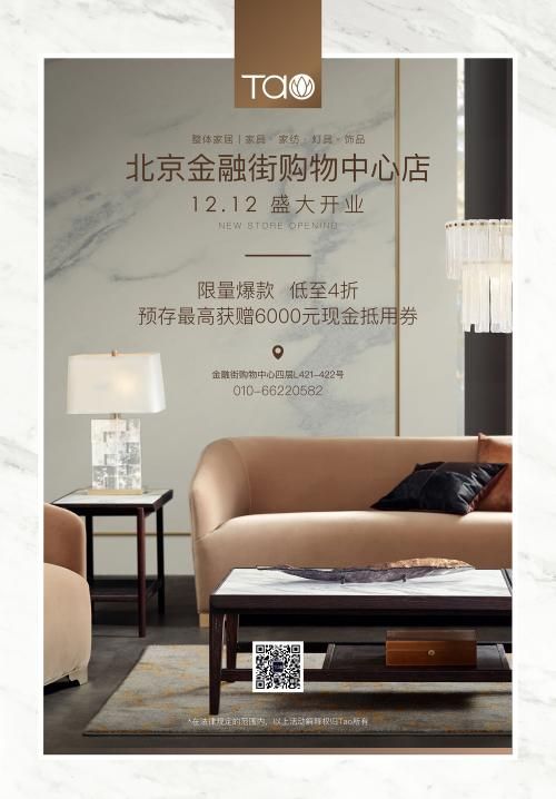 12.12~12.19,TAO金融街购物中心店新店开业,部分爆款低至4折,最高赠6000元现金抵用券,更多礼惠详询门店。