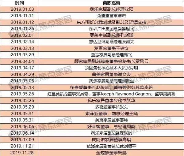 纵观2019年的高管频繁离职潮,离职的背后折射的是国内家居市场拐点已至,战略收缩、开源节流、收取复合型人才已成为企业当务之急。