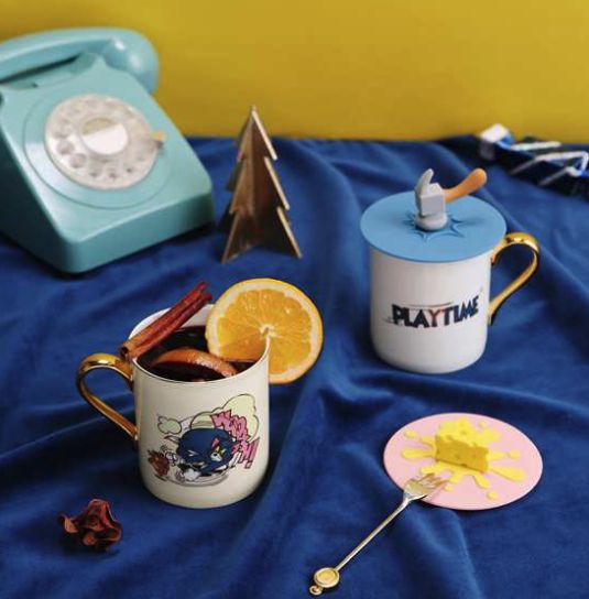 Tom & Jerry骨瓷对杯套装,印有Tom and Jerry经典嬉逐图案,还配有锤子和奶酪造型的立体软硅胶杯盖,日常水杯就此获得趣味能量弹,赢得所有人会心一笑。