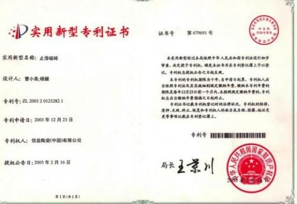 在挑选瓷砖的时候除了要认准有保障的品牌,也要考虑到实用性。瓷砖的防滑工艺,也可说是挑选瓷砖的一大要素。尤其是家中有老人小孩的,在家中滑倒可谓是安全隐患。冠军磁砖在防滑研究上有着十几年的技术优势,并于2003年成功申请了《止滑瓷砖》的专利。