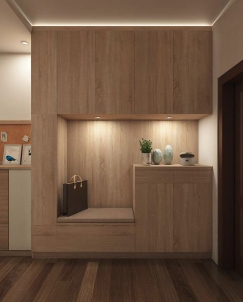 例如好莱客大师设计之贝加尔湖畔系列,结合原态k板专属定制,收纳空间提升50%。门厅柜精妙将鞋柜+收纳柜结合,置顶设计既能增加收纳空间,时尚的设计也能极大的提升房子的整体气质;餐厅采用“餐桌+餐边柜”的设计,不仅兼容收纳和展示功能,还能营造良好温馨幸福家庭氛围;书房采用“座位柜+收纳柜”设计,同时满足多功能需求,实用性能满分。