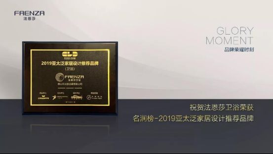 法恩莎卫浴荣获名润榜-2019亚太泛家居设计推荐品牌