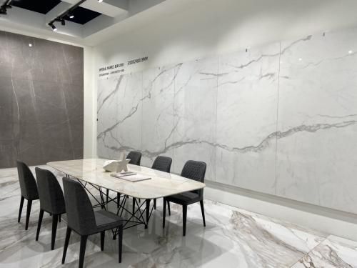 赵帆:今年参展的新品在质感、规格和厚度上非常的齐全,从常规尺寸的瓷砖产品一直跨度到岩板,让消费者和设计师们有更多的不同选择。此次设计周道格拉斯主打产品是岩板,同时基于空间运用的概念,我们会有一些岩板制造的家居类用品,包括意大利原装进口的橱柜、桌椅等。中国岩板的发展有四个阶段:第一阶段将岩板当成瓷砖;第二阶段对岩板进行轻微加工;第三阶段利用岩板进行现场加工,做成产品;第四阶段是成品。在展厅里,可以看到四个阶段的展示,还有很多用岩板加工出来的产品摆件,体现了我们在岩板在家居中运用的设计感和实力。