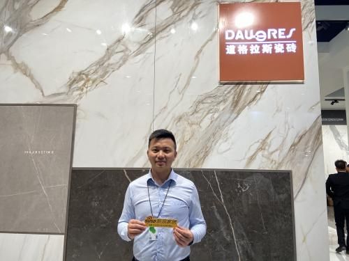 赵帆:去年我们展厅以“家”为概念,今年我们扩大了展馆面积,更贴近设计选材的概念,在材料方面,我们提供了一些具有创新性的材料给设计师进行选择和了解,其中以皇家大理石为代表的系列产品,在产品质感、厚度和规格上都非常齐全,可以满足不同的消费者对家居装饰的需求。这是本次设计周我们创新和突破的地方。