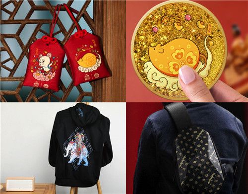以藏传佛教神兽“吐宝鼠”为灵感,专为2020年生肖鼠年打造的“金鼠迎吉”系列产品,凭借可爱的外形和招财纳福的寓意备受关注,吐宝鼠新春刺绣福袋、吐宝鼠流沙杯垫等产品受到消费者热烈追捧。吉祥八宝单肩包,将八宝纹重新设计应用在产品之上,既有独特的装饰性和西藏风格,又赋予了其吉祥的寓意,让你“硬核出行,随型所欲”。福麟吉象卫衣,麒麟是中国传统瑞兽,“吉象”同音吉祥,设计将福麟吉象迎福纳吉的寓意进行提炼,概括为现代设计符号应用在卫衣上,将宗教美学引入现代设计,别具一格。