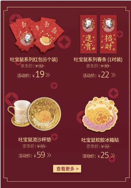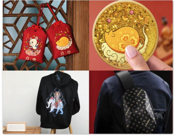 以藏传神兽“吐宝鼠”为灵感,专为2020年生肖鼠年打造的“金鼠迎吉”系列产品,凭借可爱的外形和招财纳福的寓意备受关注,吐宝鼠新春刺绣福袋、吐宝鼠流沙杯垫等产品受到消费者热烈追捧。吉祥八宝单肩包,将八宝纹重新设计应用在产品之上,既有独特的装饰性和西藏风格,又赋予了其吉祥的寓意,让你“硬核出行,随型所欲”。福麟吉象卫衣,麒麟是中国传统瑞兽,“吉象”同音吉祥,设计将福麟吉象迎福纳吉的寓意进行提炼,概括为现代设计符号应用在卫衣上,将宗教美学引入现代设计,别具一格。