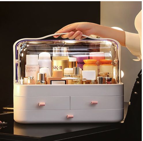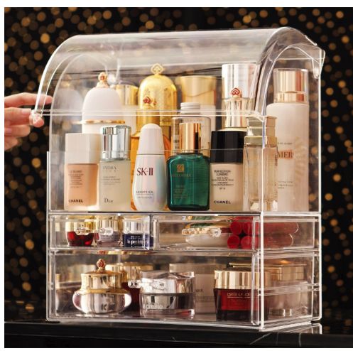 在不断发展中,丽纳洁收纳整理发现,化妆品收纳盒常年放在桌子上,积灰也是常有的事,因此,丽纳洁收纳整理在原有基础上增加了防尘盖,给化妆品更好的保护。后来,在对化妆品收纳盒的一步步探索之中,丽纳洁收纳整理不再满足于其只带有收纳功能,还特别增加了手提设计和镜面,方便消费者携带和使用。