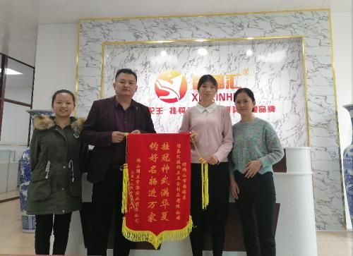 10月12日讯(佛山记者 张伟 ) 近日,佛山国立货架实业有限公司赵总一行2人专程赶到佛山市信鑫汇五金制品有限公司,将一面印有“挂冠神武满华夏 钩好名扬进万家”的锦旗送到信鑫汇挂钩王,公司王总手中,真诚感谢CCTV央视展播品牌信鑫汇挂钩王五金,在过去的6年合作中“服务优、交期准、投诉零”,的高质量工作效率,从而让国立货架与信鑫汇挂钩王五金六年来携手同行,快速腾飞。