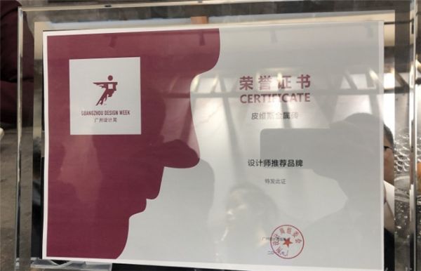 同时,皮维斯•金属砖凭借优质的产品,精湛的展厅设计在众多品牌之中脱颖而出,夺得“2019广州设计周设计师推荐品牌”“2019广州设计周学院研修院教育支持伙伴”“ICS刷新运动•瓷海国际站联盟商家”等多项殊荣。
