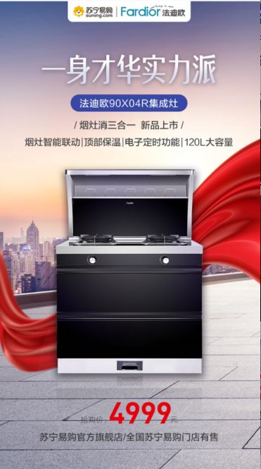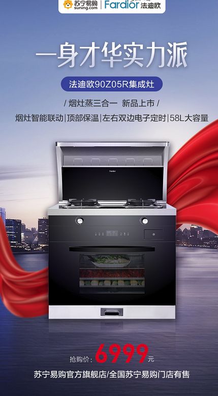 据了解,专注打造高端欧洲厨卫品牌的法迪欧,这个双十二发布了两款新品集成灶,分别设置了“油烟机、燃气灶、消毒柜”组合——90X04R、“油烟机、燃气灶、蒸箱”CP——90Z05R,两款产品都堪称厨房界的实力派。上市恰逢双十二,价格方面一定相当给力,小伙伴们可到苏宁易购全国各大门店咨询选购!
