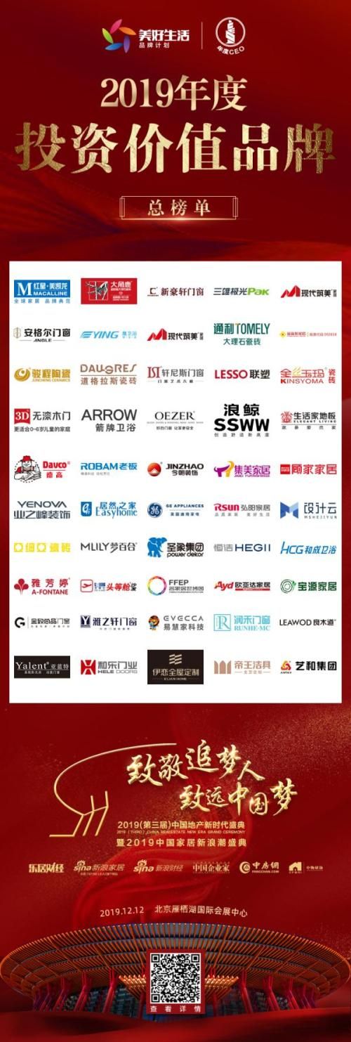 此次盛典以此契机致敬新时代下的家居品牌力量。经过多轮评选,秉承公开、公平、公正的原则,在考量了企业核心业务盈利能力、独特竞争优势、行业地位、品牌影响力、持续盈利能力及资本状况等多个衡量维度,大会综合评定出2019年度最具投资价值品牌奖。