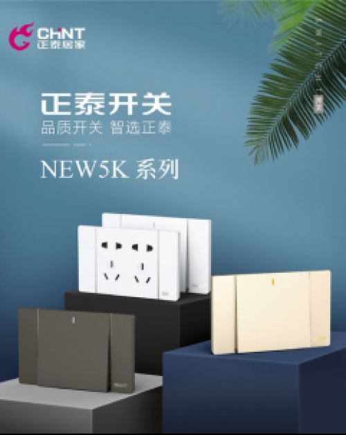 正泰居家NEW5K大板开关系列,多种规格和功能模块齐全,自由组合,能够满足不同居家场景的使用需求。