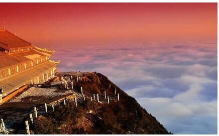 峨眉金顶日出:站在峨眉最高处,眺望远方,一轮红日出现在天边,慢慢升起,如佛光普照。