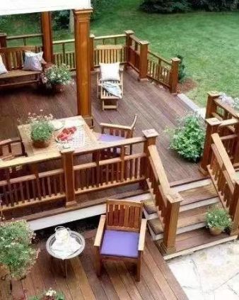 园林景观中,或多或少都会出现木平台,配上一些木质家居,不仅加深了景观层次感,更给人一种惬意舒适之感;利用防腐木建造的亲水平台,与水零距离接触,可营造出最接地气的生态景观;亦可做成栅栏,加上绿植配置,独特的艺术效果更柔和更自然。