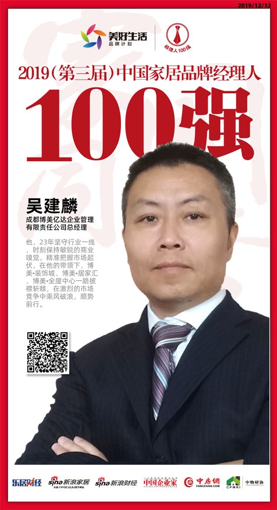 快讯:博美吴建麟荣获“2019中国家居品牌经理人100强”