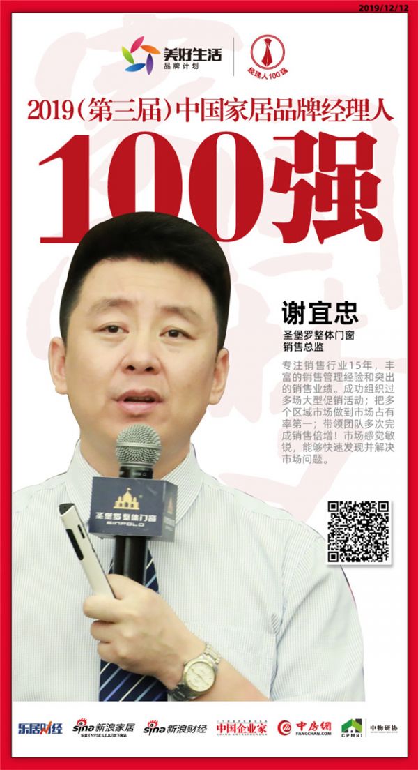 圣堡罗整体门窗谢宜忠获“2019中国家居品牌经理人100强”