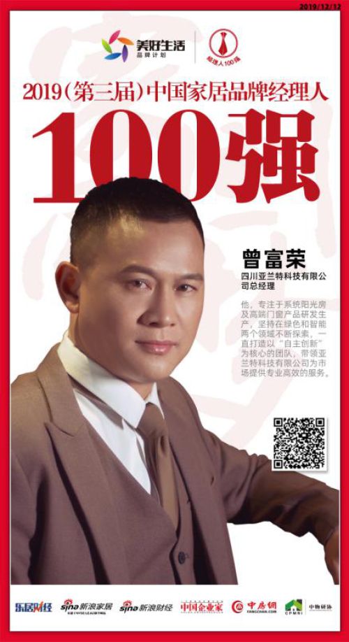 2019年12月12日,“致敬追梦人·致远中国梦——2019(第三届)中国地产新时代盛典暨2019中国家居新浪潮盛典”在北京举行。盛典现场,“2019(第三届)中国家居品牌经理人评选”结果揭晓。Yalent亚蓝特总经理曾富荣获“2019中国家居品牌经理人100强”。