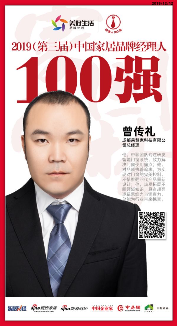 网址:成都易慧家曾传礼获” 2019中国家居品牌经理人100强” https://www.jiaju82.com/news-view-id-680764.html
