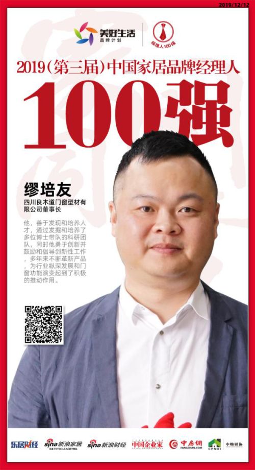 良木道门窗缪培友荣获“2019中国家居品牌经理人100强”