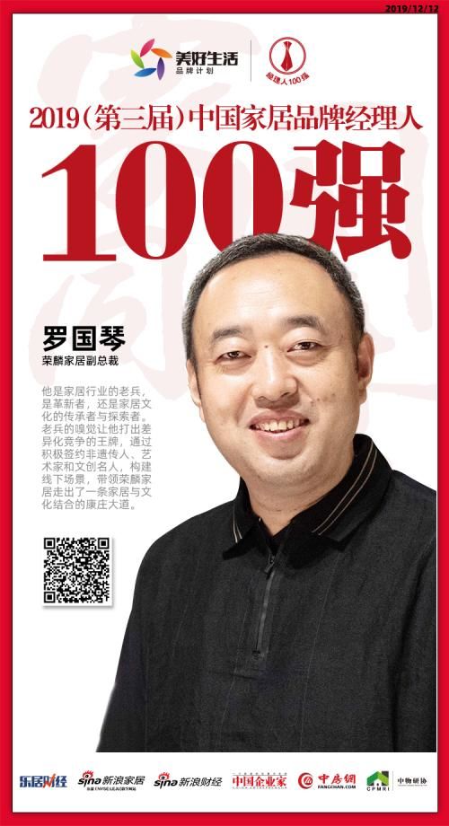 快讯:荣麟家居罗国琴荣获“2019中国家居品牌经理人100强