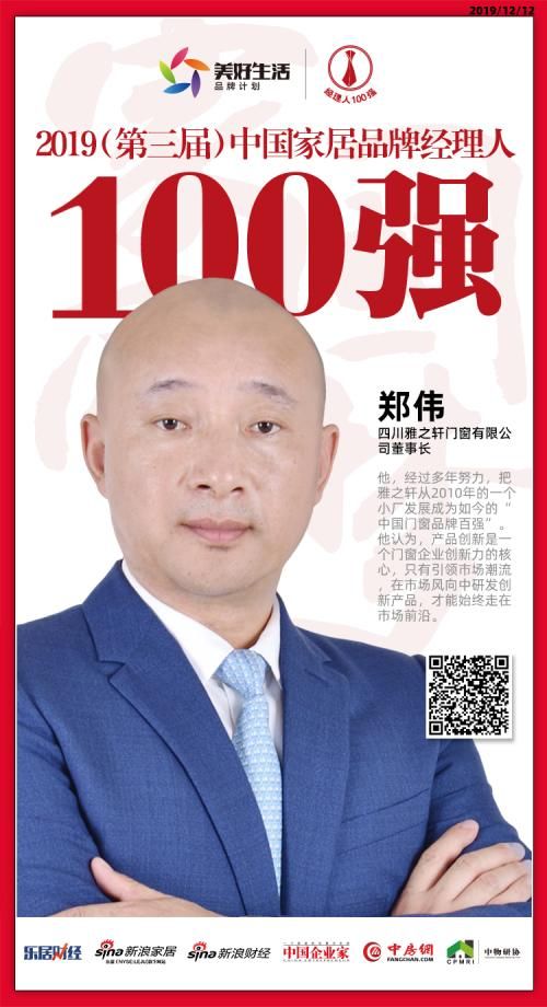 雅之轩门窗郑伟荣获“2019中国家居品牌经理人100强”