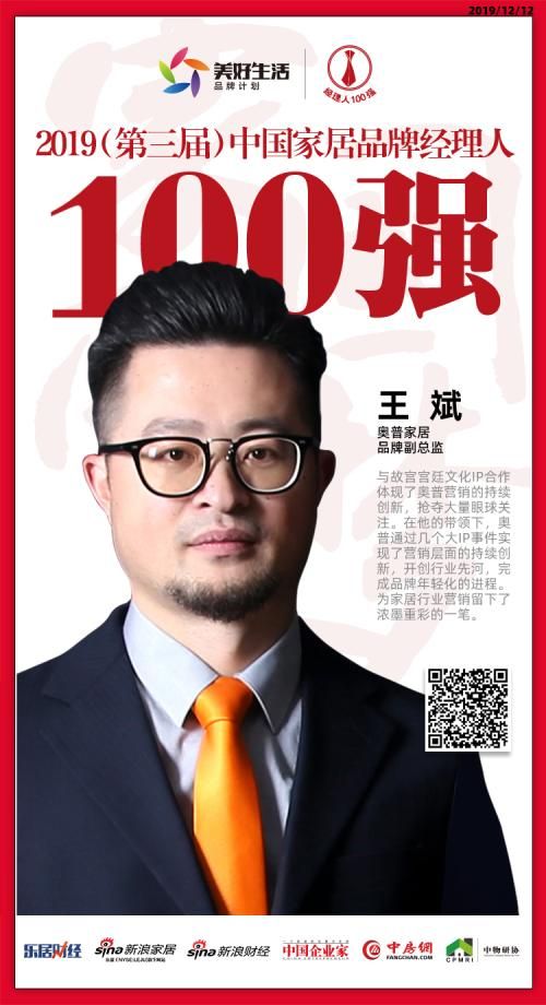 2019年12月12日,“致敬追梦人·致远中国梦——2019(第三届)中国地产新时代盛典暨2019中国家居新浪潮盛典”在北京举行。盛典现场,“2019(第三届)中国家居品牌经理人评选”结果揭晓。奥普家居品牌副总监王斌获2019中国家居品牌经理人100强。