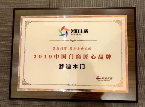 喜讯 | 鑫迪木门荣获“2019中国门窗匠心品牌30强”