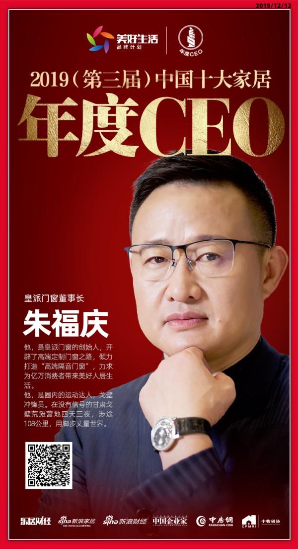 快讯:皇派门窗朱福庆荣获“2019中国十大家居年度CEO”