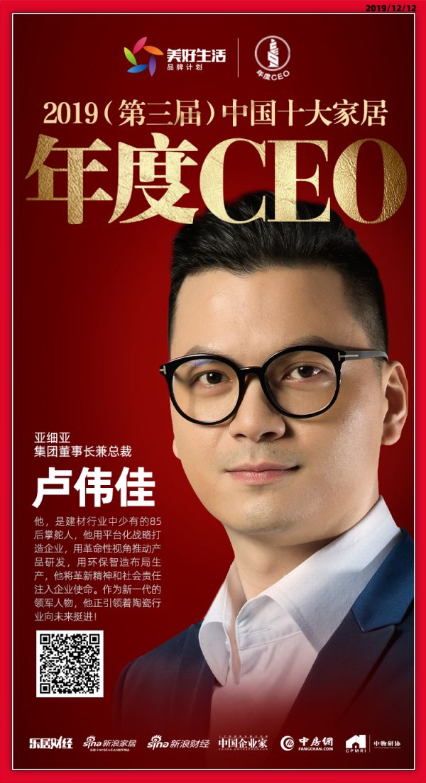 快讯:亚细亚瓷砖卢伟佳荣获2019中国十大家居年度CEO