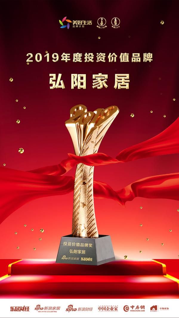 以重塑家的美学为宗旨的弘阳家居,凭借其生活理念、经营管理模式、领导力发展和企业文化等多个维度的综合表现,获得媒体、协会、商会等机构的共同认可,荣膺2019年度投资价值品牌。