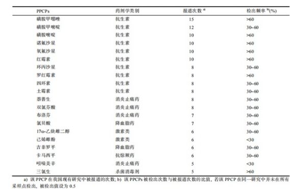 我国水环境中药品和个人护理品的污染现状