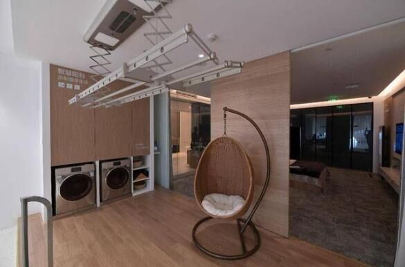 而且在智慧阳台里,这些产品也不是简单地拼凑在一起,而是可以智慧互联。例如洗衣机能够自动识别材质启动洗涤程序;干衣机在洗衣机洗完衣服后自动匹配烘干程序;晾衣架自动下降,轻轻一碰自动回升。海尔智慧音箱还有洗完提醒功能,让你及时晾晒衣物。